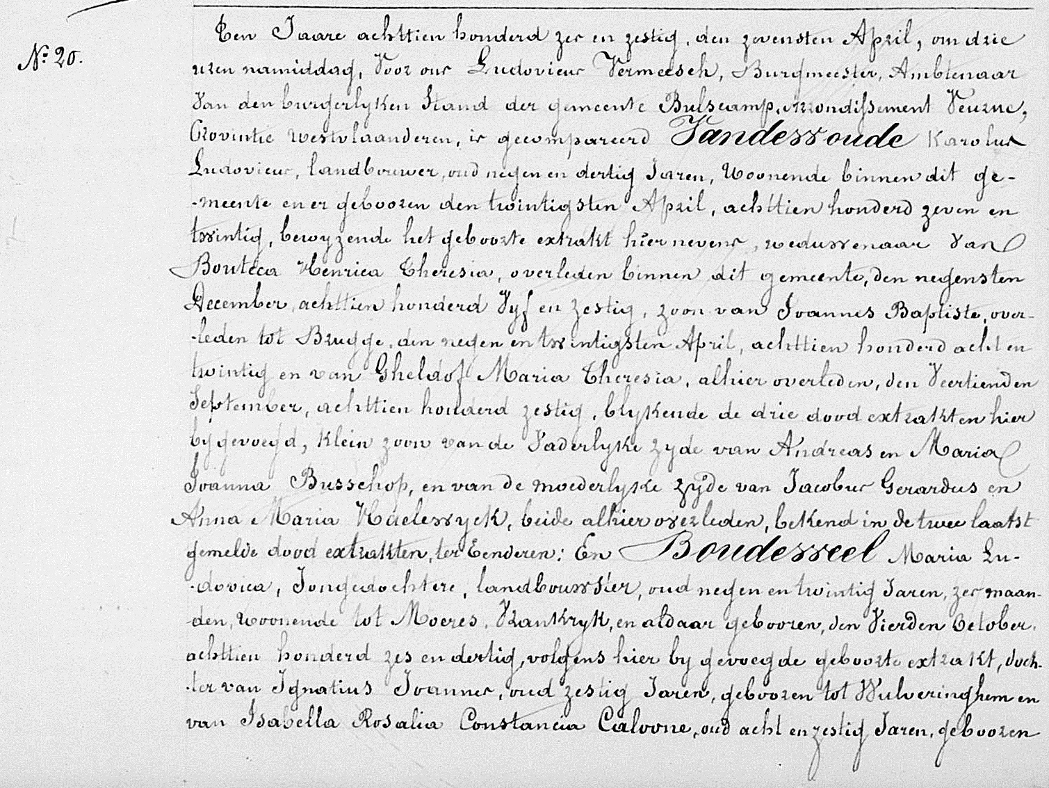 Bulskamp, WV, BE: Huwelijksakte nr 20 (1866)