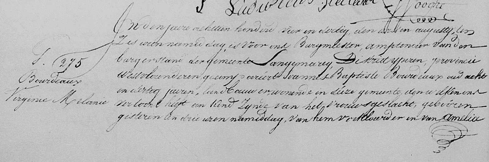 Langemark, WV, BE: Geboorteakte nr 275 (1834) (Bron [358])