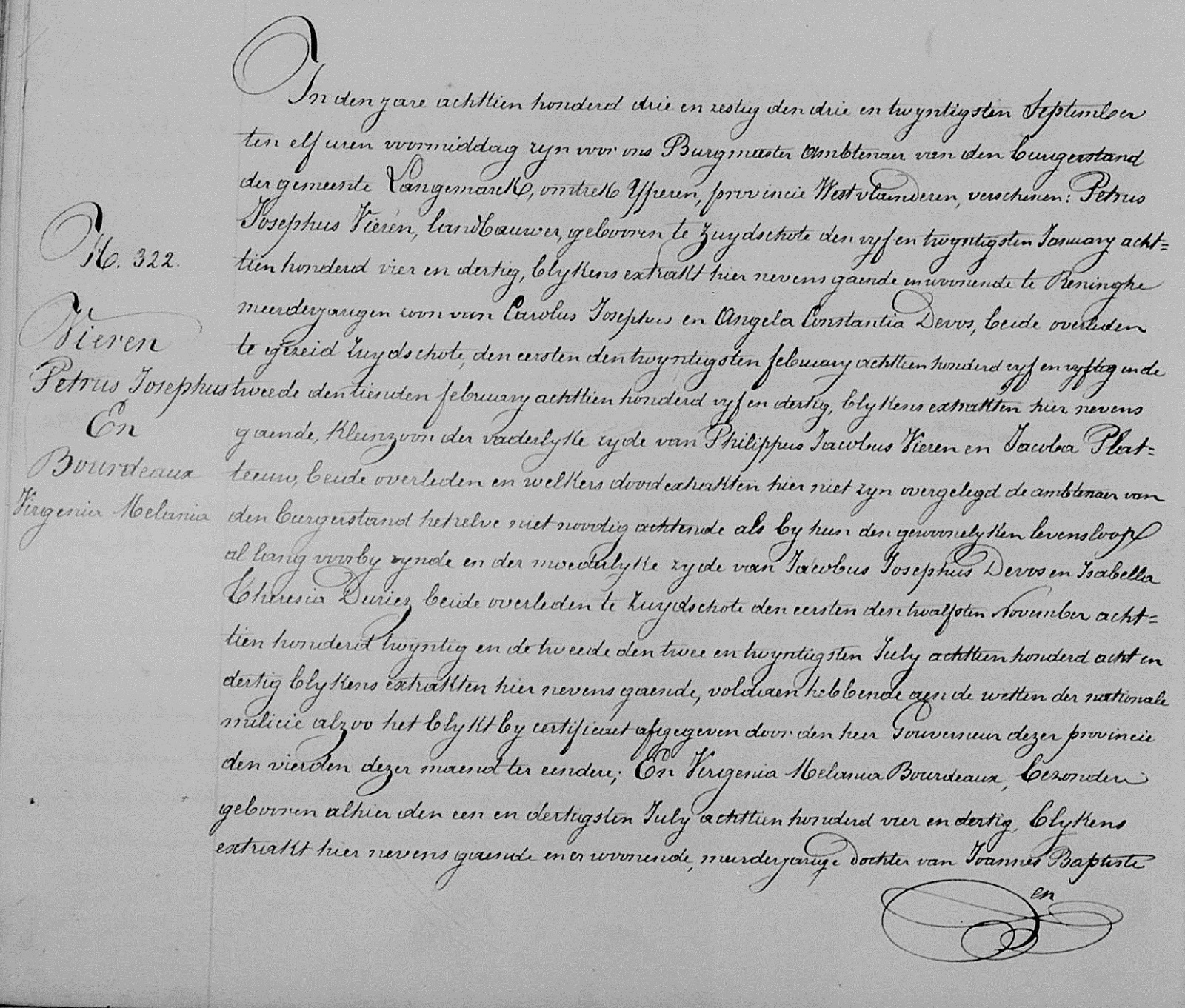 Langemark, WV, BE: Huwelijksakte nr 322 (1863) (Bron [358])