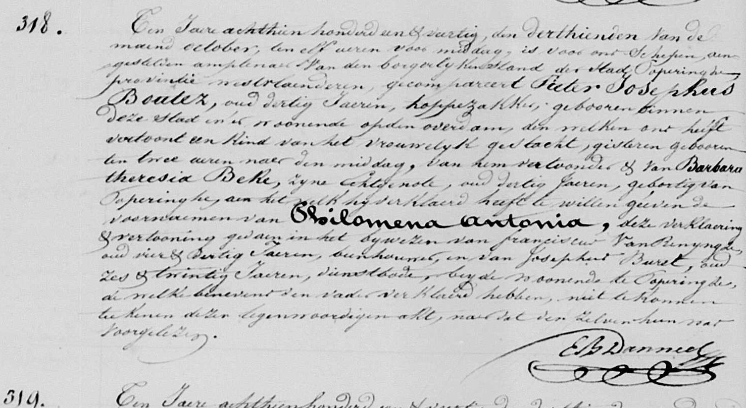 Poperinge, WV, BE: Geboorteakte nr 318 (1841) (Bron [358])