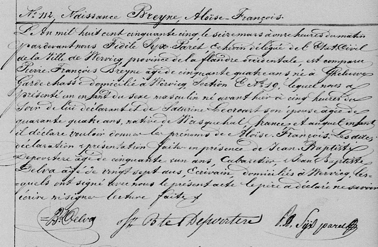 Wervik, WV, BE: Geboorteakte nr 112 (1855) (Bron [358])