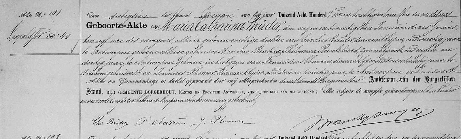 Borgerhout, AN, BE: Geboorteakte nr 101 (1884) (Bron [358])