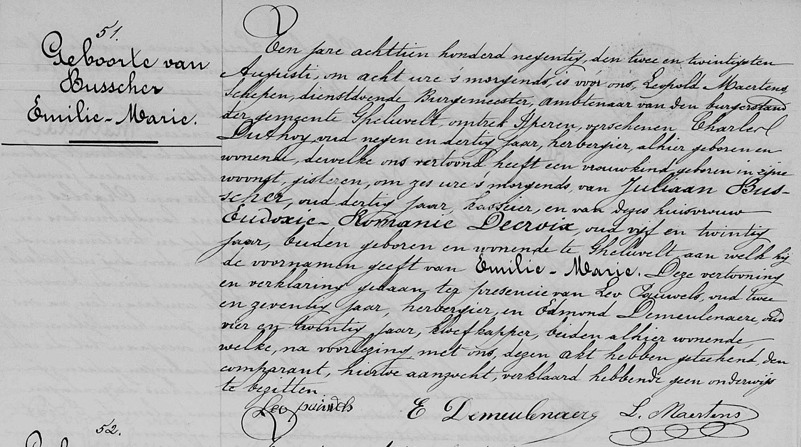 Geluveld, WV, BE: Geboorteakte nr 51 (1890) (Bron [358])