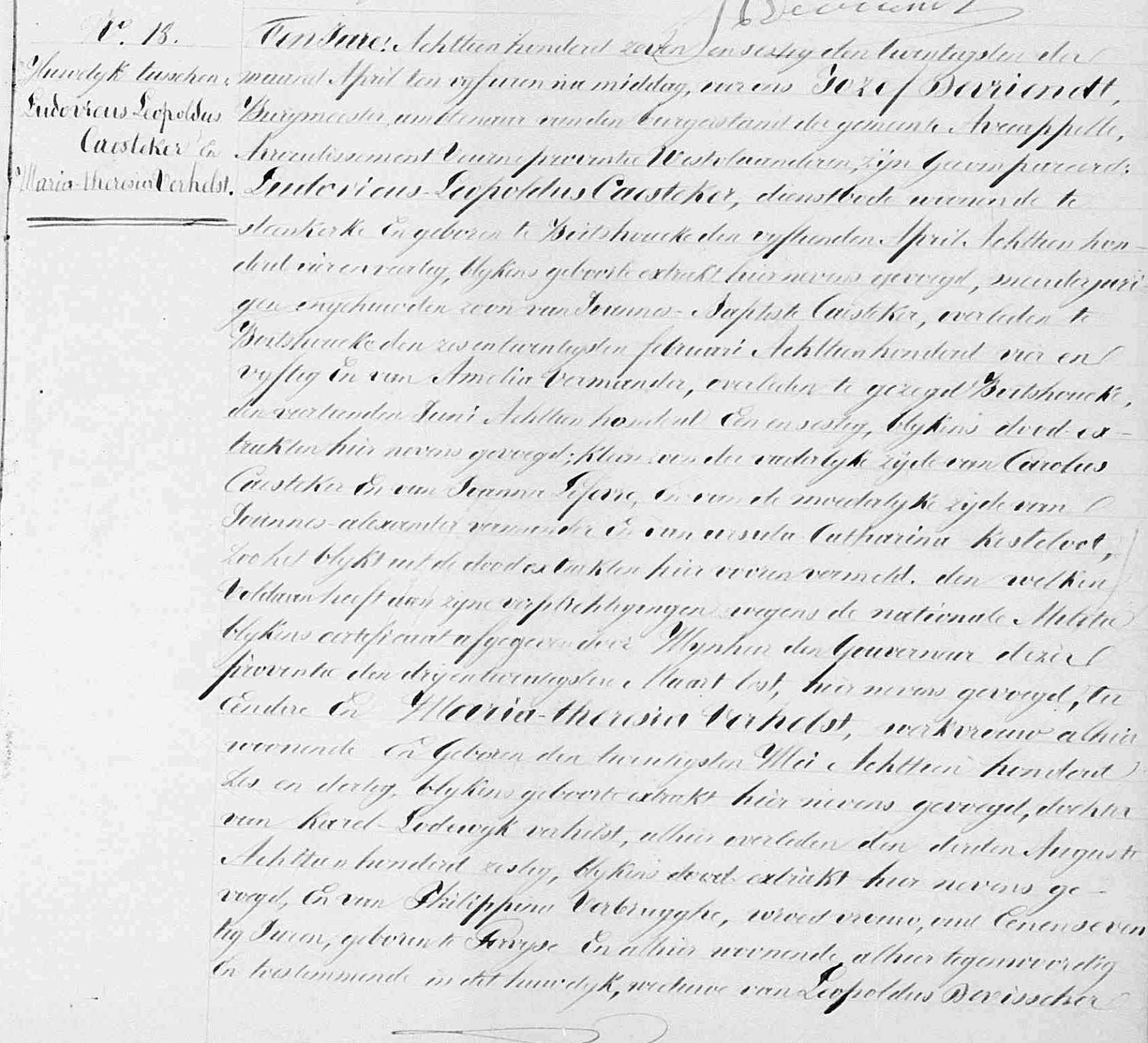 Avekapelle, WV, BE: Huwelijksakte nr 18 (1867) (Bron [358])