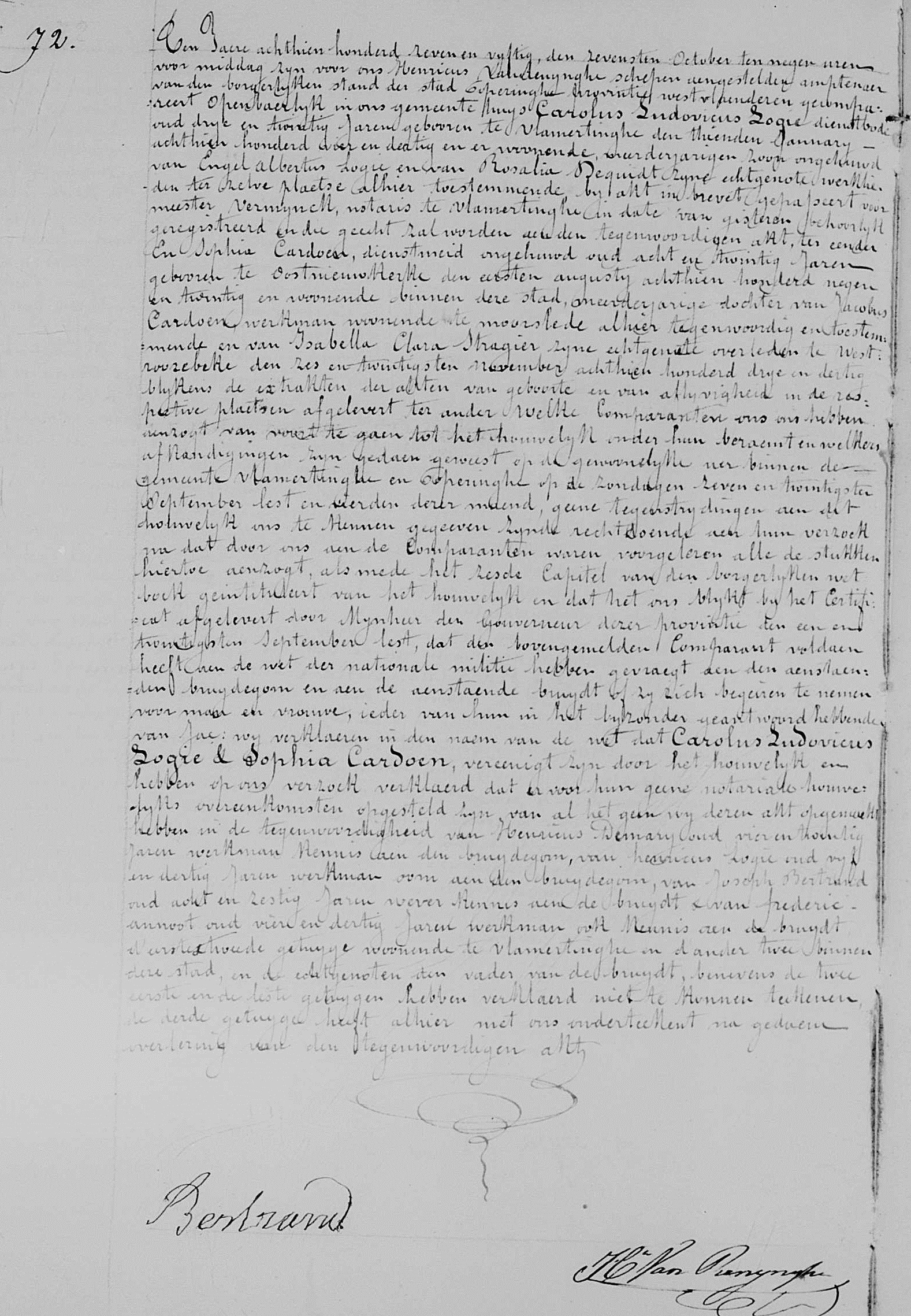 Poperinge, WV, BE: Huwelijksakte nr 72