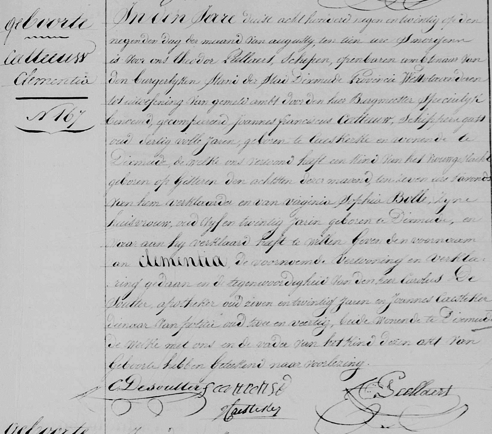 Diksmuide, WV, BE: Geboorteakte nr 167 (1829) (Bron [358])