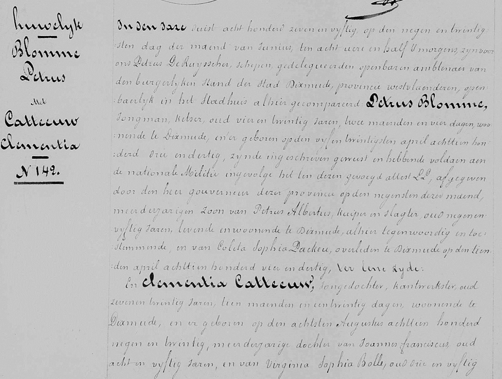 Diksmuide, WV, BE: Huwelijksakte nr 142 (1857) (Bron [358])