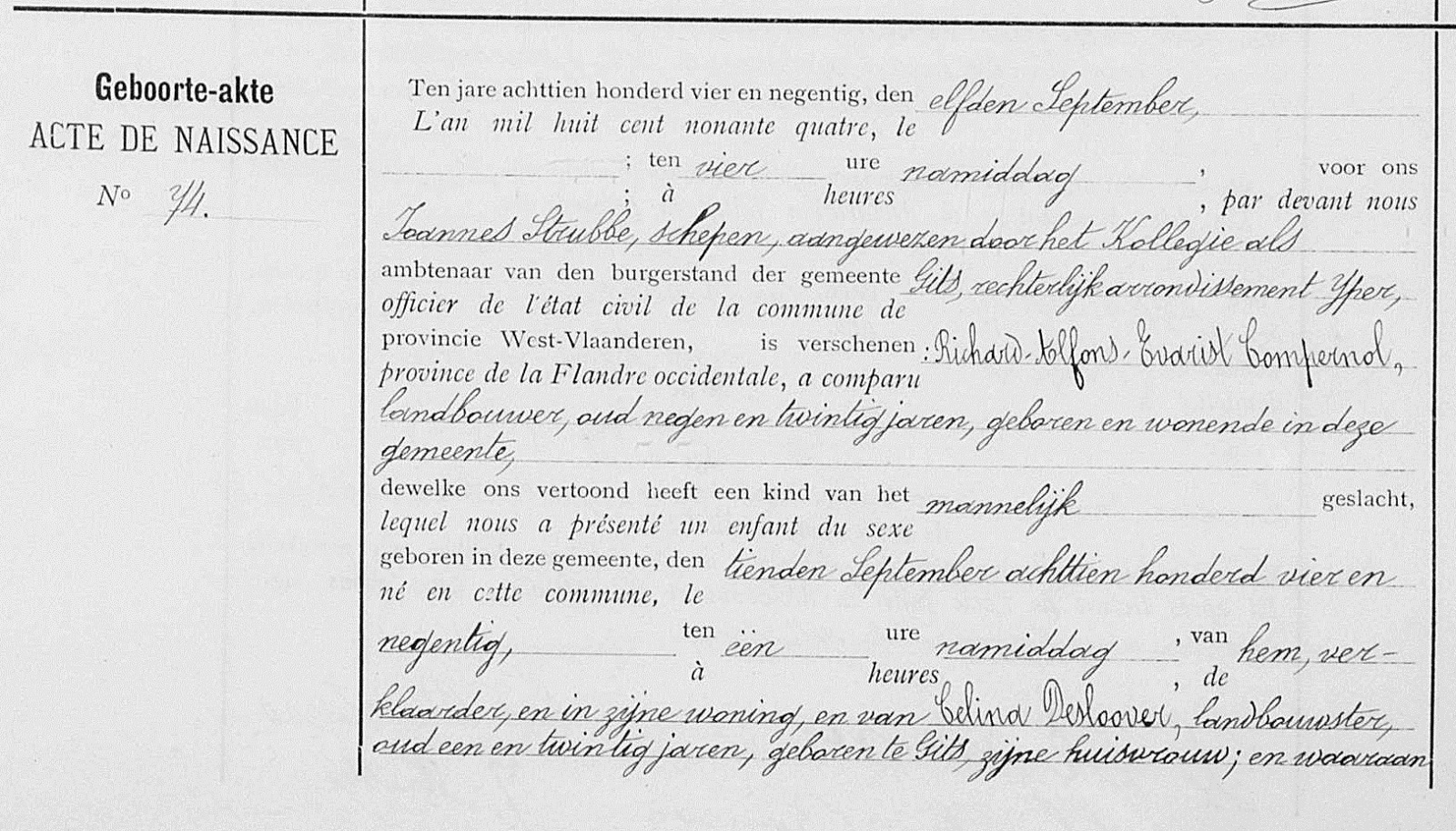 Gits, WV, BE: Geboorteakte nr 74 (1894) (Bron [358])