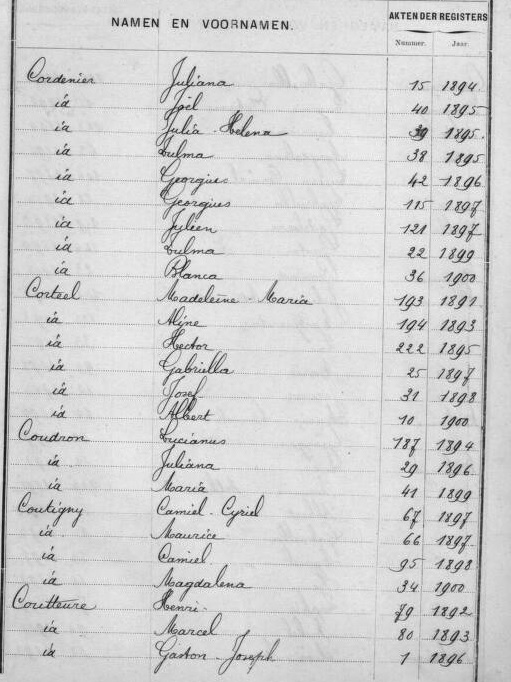 Watou, WV, BE: Tienjarige tafel 1891-1900 van de burgerlijke stand (Bron [229])