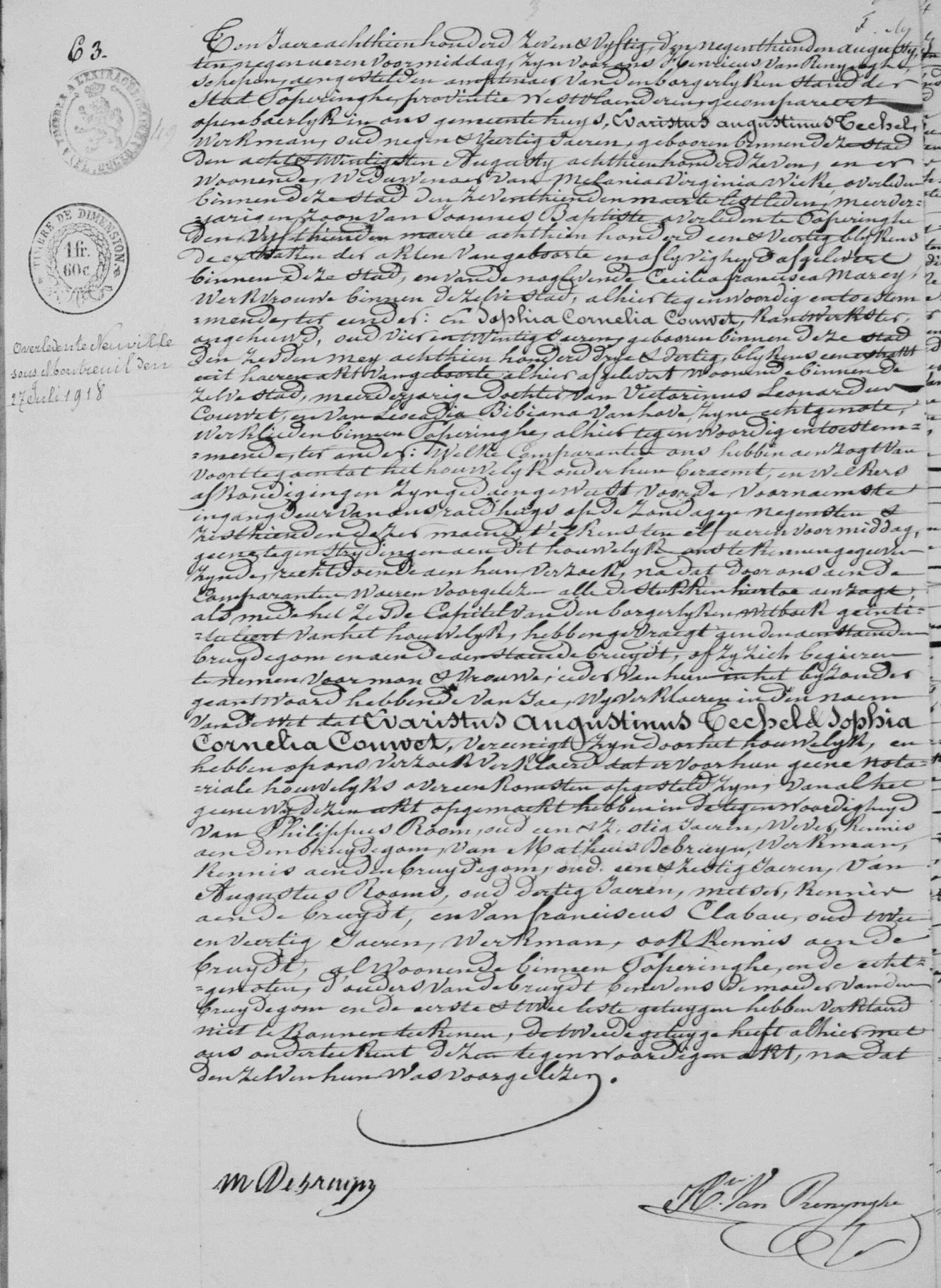 Poperinge, WV, BE: Huwelijksakte nr 63 (1857) (Bron [358])