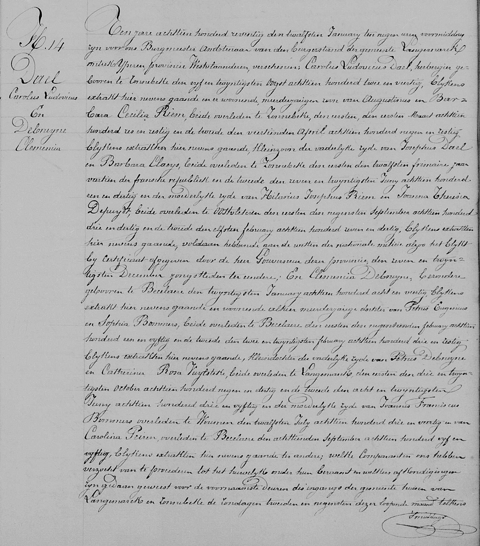 Langemark, WV, BE: Geboorteakte nr 14 (1870) (Bron [358])