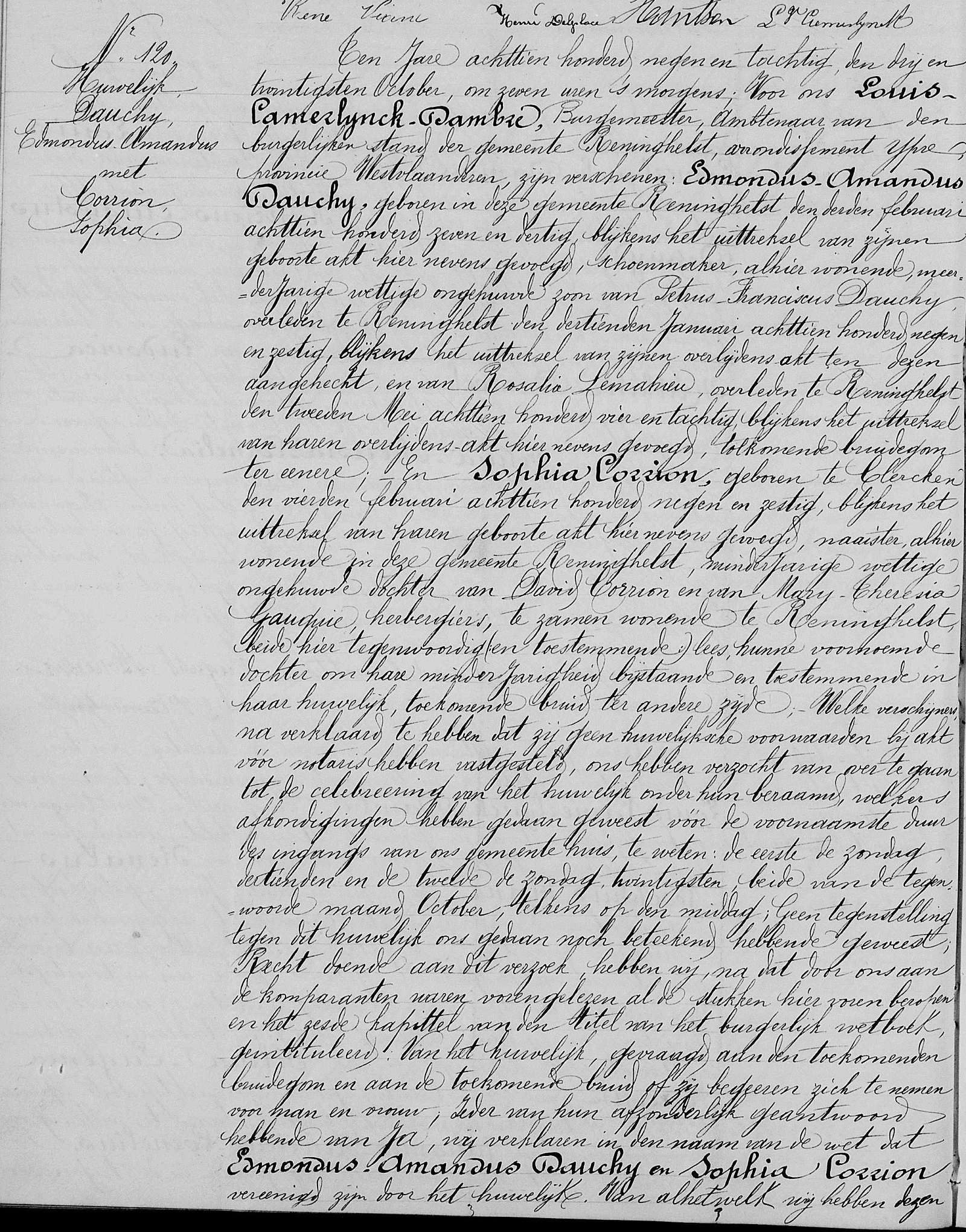 Reningelst, WV, BE: Huwelijksakte nr 120 (1889) (Bron [358])