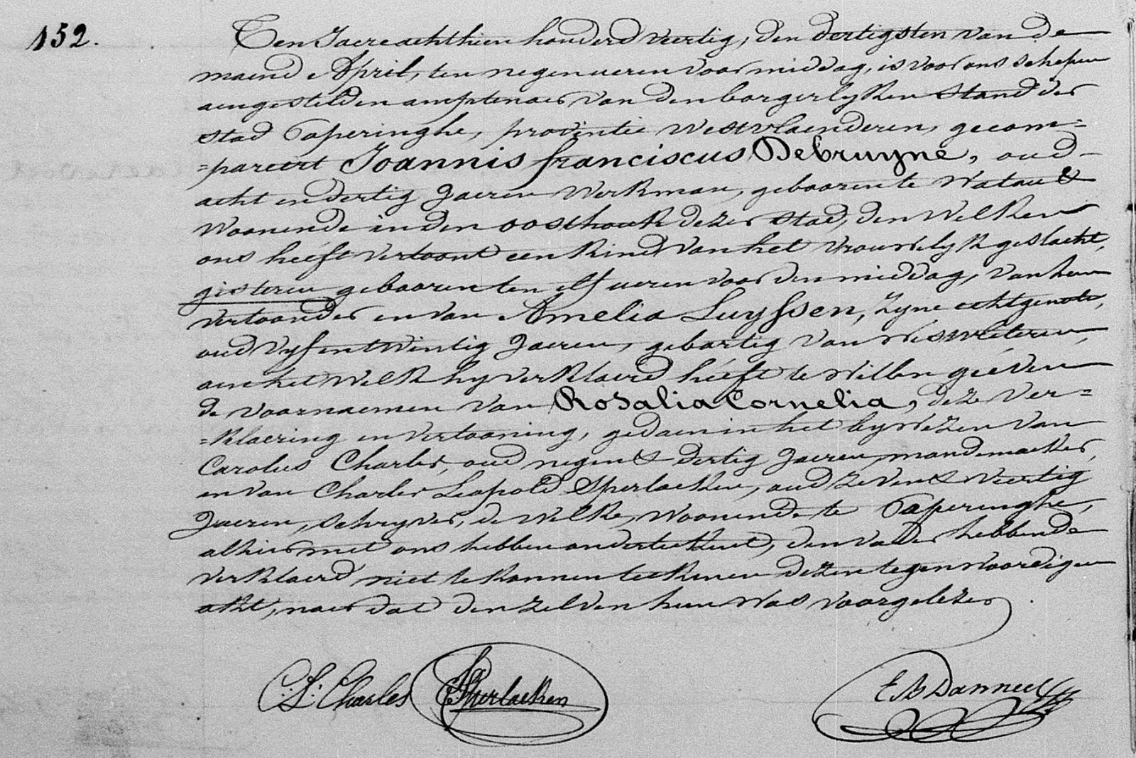 Poperinge, WV, BE: Geboorteakte nr 152 (1840) (Bron [358])