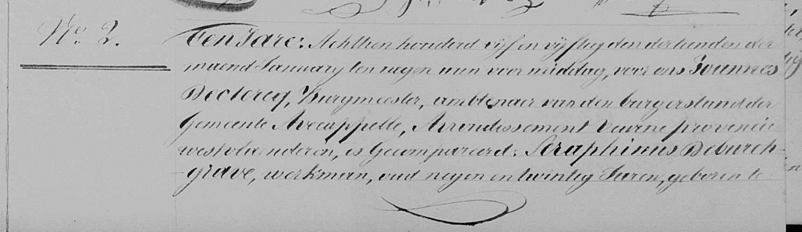 Avekapelle, WV, BE: Geboorteakte nr 2 (1855) (Bron [358])