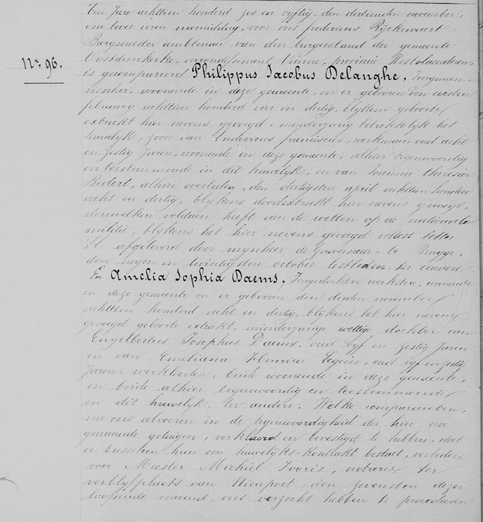 Oostduinkerke, WV, BE: Huwelijk nr 96 (1856) (Bron [358])