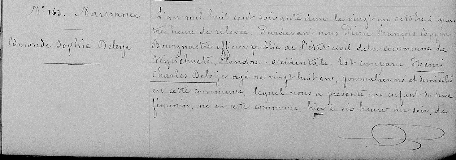 Wijtschate, WV, BE: Geboorteakte nr 163 (1862) (Bron [358])
