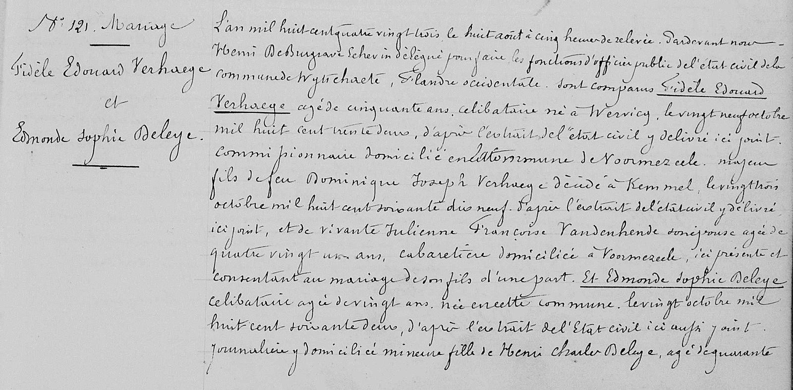Wijtschate, WV, BE: Huwelijk nr 121 (1883) (Bron [358])