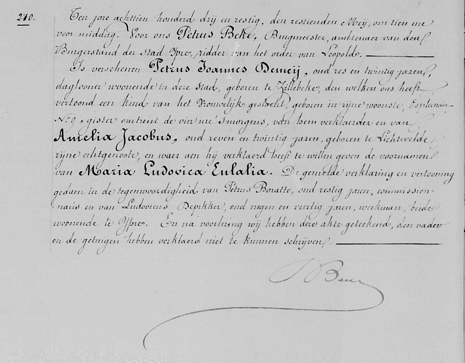 Ieper (Ypres), WV, BE: Geboorteakte nr 210 (1863) (Bron [358])