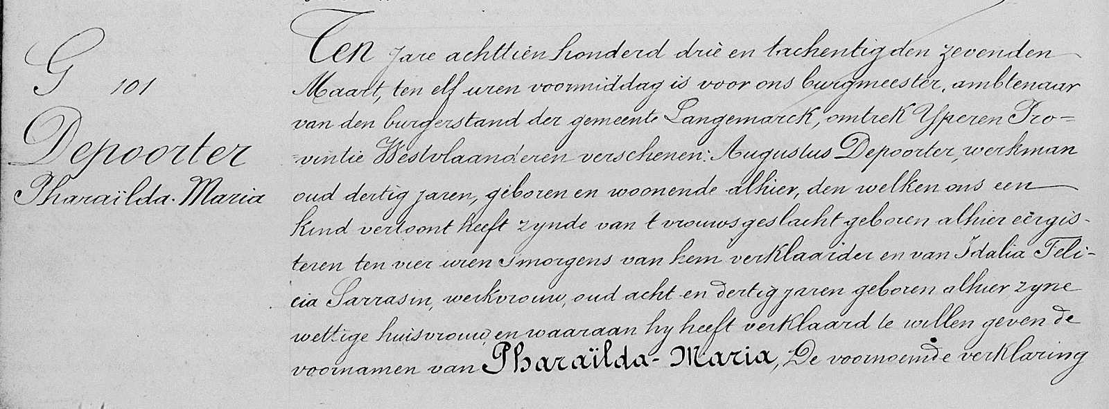 Langemark, WV, BE: Geboorteakte nr 101 (1883) (Bron [358])