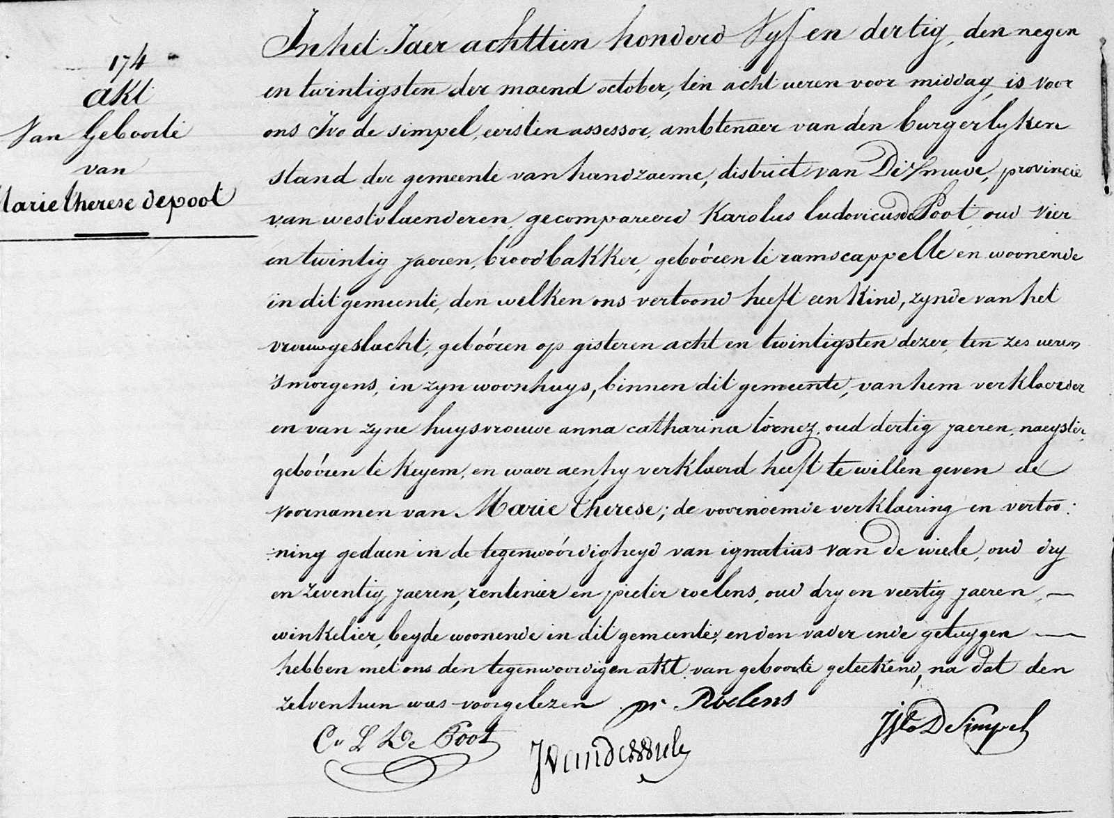 Handzame, WV, BE: Geboorteakte (Bron [358])