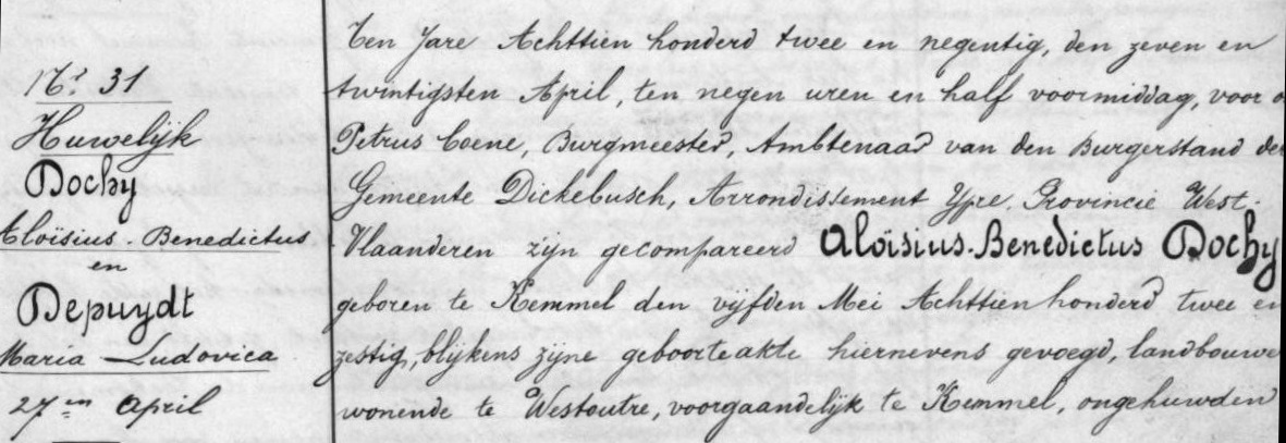 Dikkebus, WV, BE: Huwelijksakte (Bron [229])