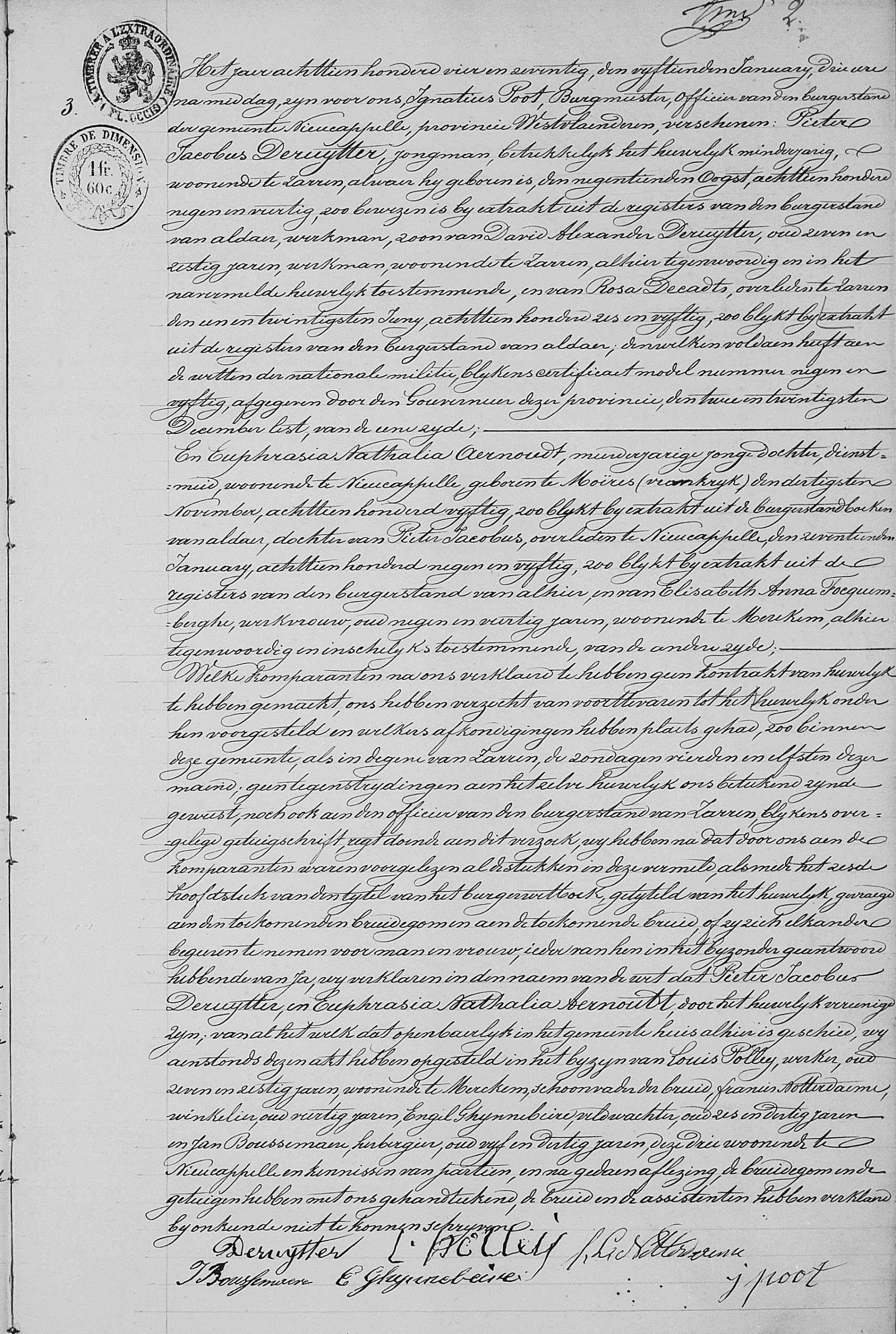 Nieuwkapelle, WV, BE: Huwelijksakte (Bron [358])