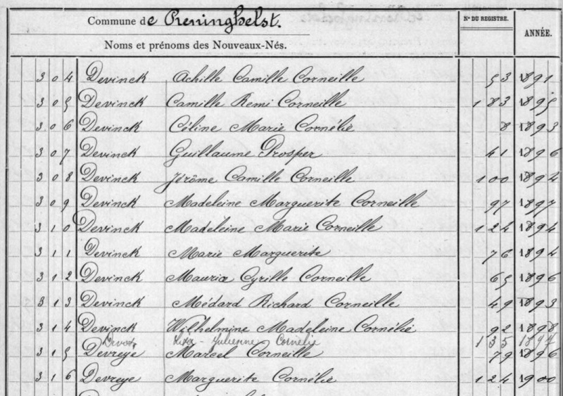 Reningelst, WV, BE,: Tienjarige tafel 1890-1900 (Bron [229])