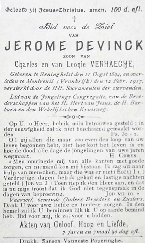 Neuville-sous-Montreuil, Pas-de-Calais, FR: Overlijdensakte (Bron: Annick en Gérard LEFRANC)