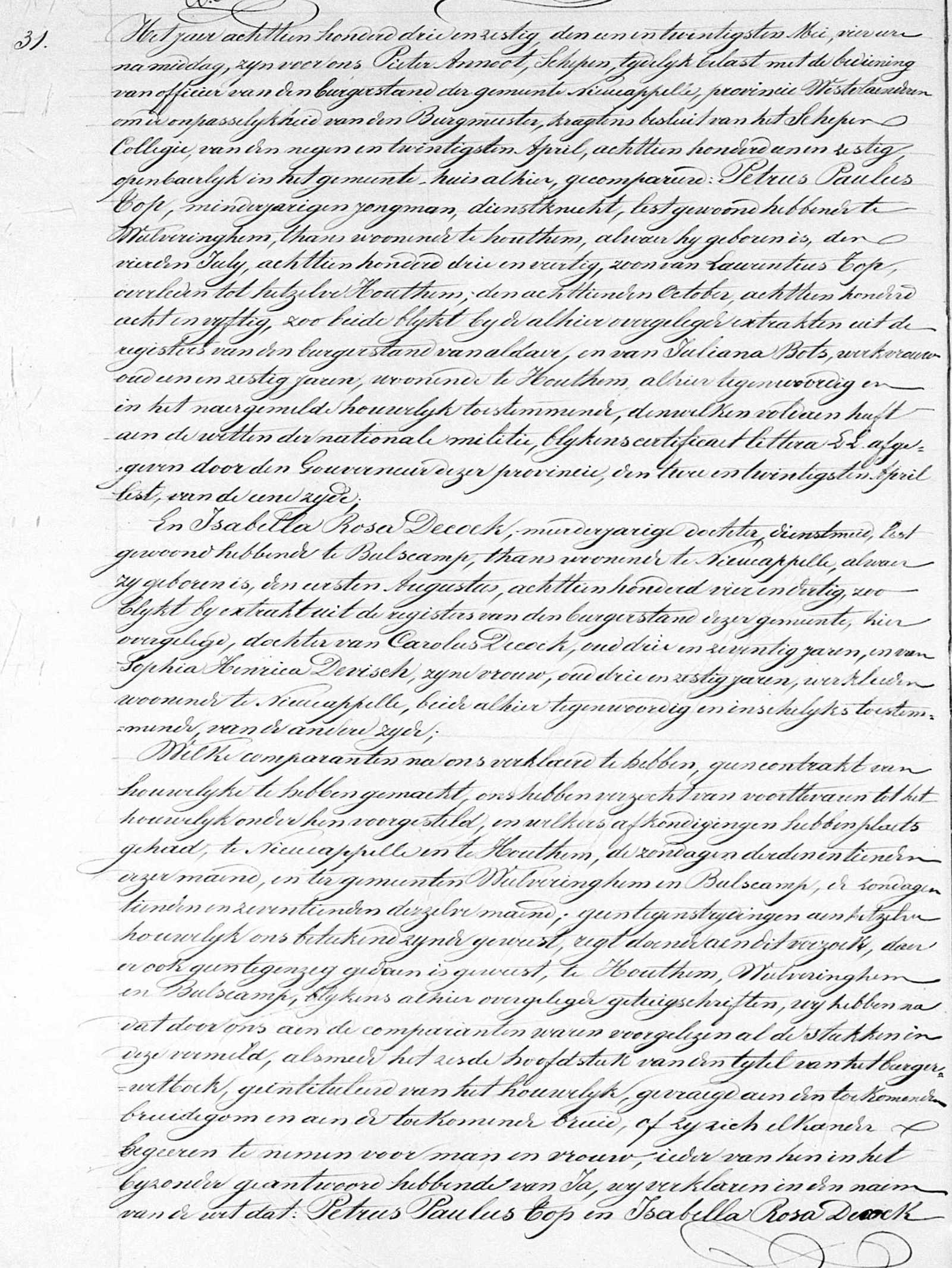 Nieuwkapelle, WV, BE: Huwelijkakte nr 31 (1863) (Bron [358])