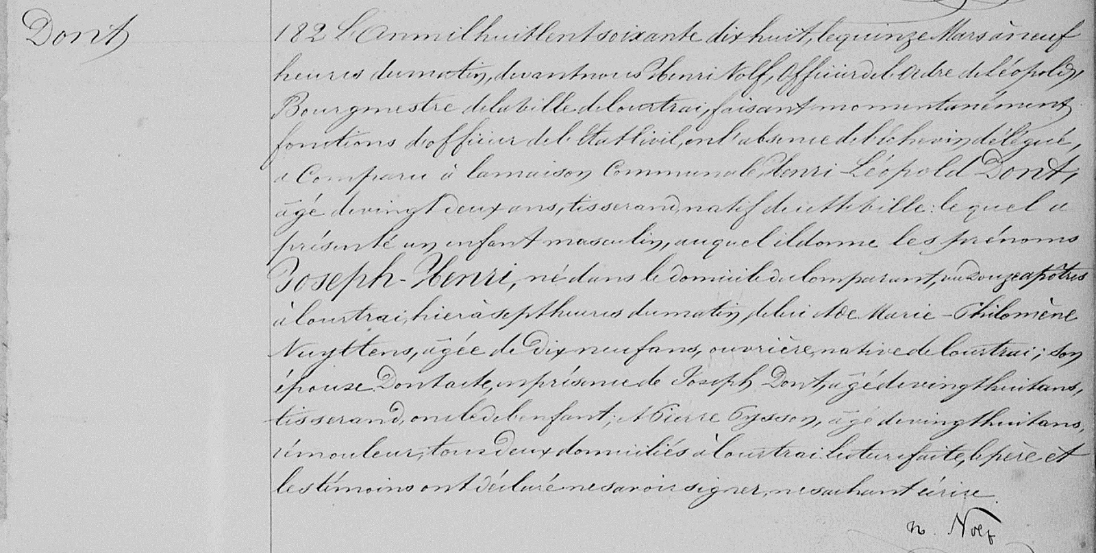 Kortrijk, WV, BE: Geboorteakte nr 182 (1878) (Bron [358])