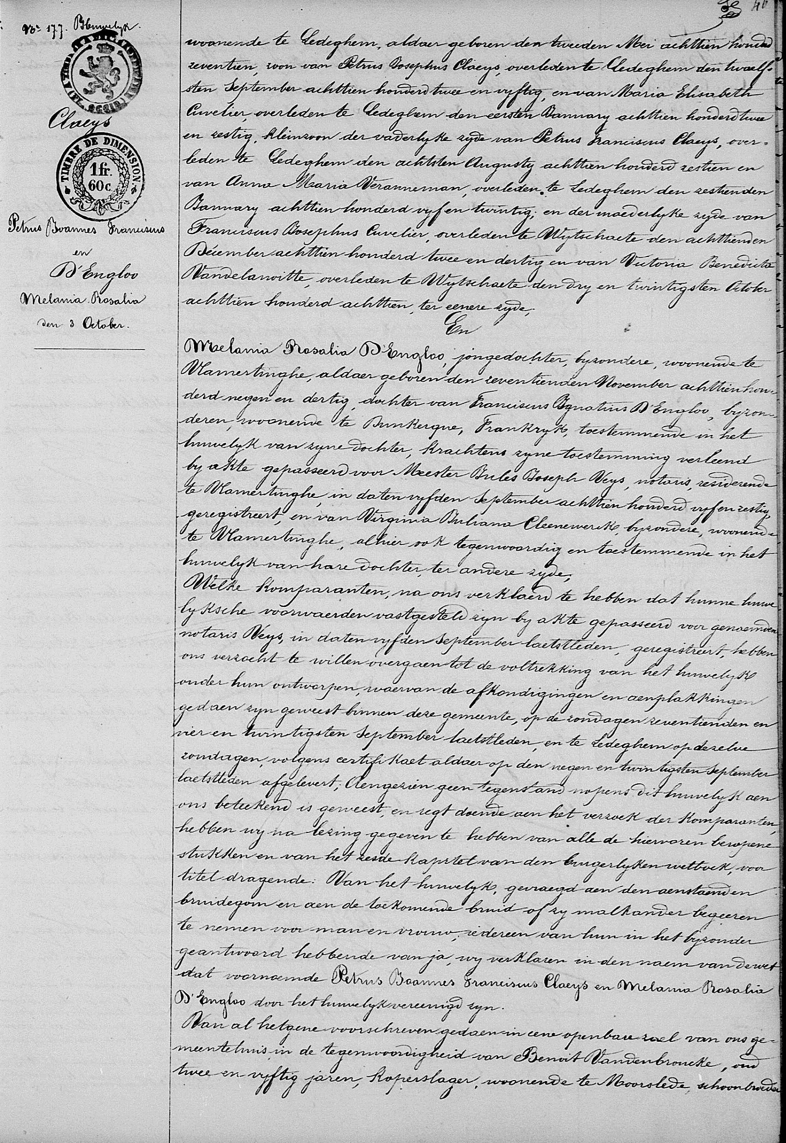 Vlamertinge, WV, BE: Huwelijksakte nr 177 (1865) (Bron [358])