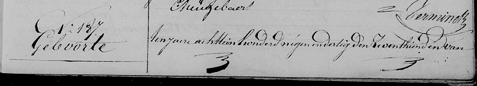 Vlamertinge, WV, BE: Geboorteakte nr 187 (1839) (Bron [358])