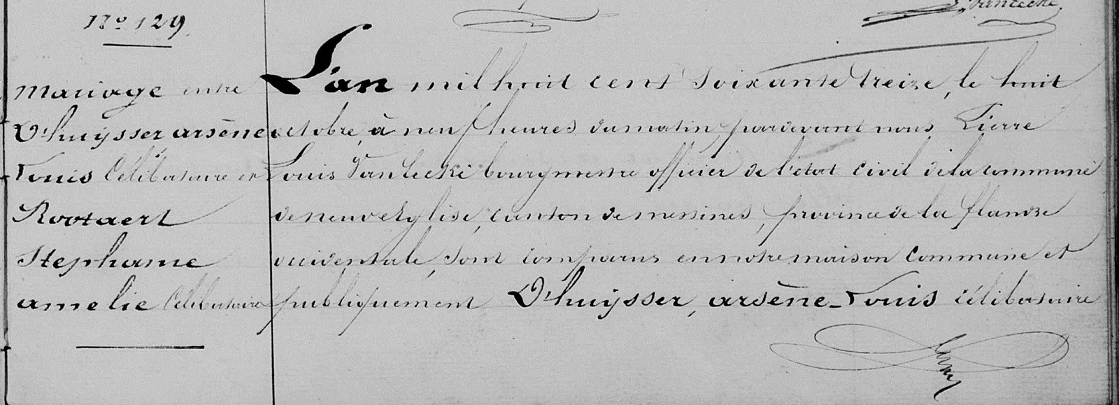 Nieuwkerke, WV, BE: Huwelijksakte nr 129 (1873) (Bron [358])
