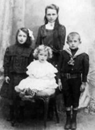 Voorgrond: Jeanne, Irène, Lucien. Achtergrond, Yvonne (Bron [4])