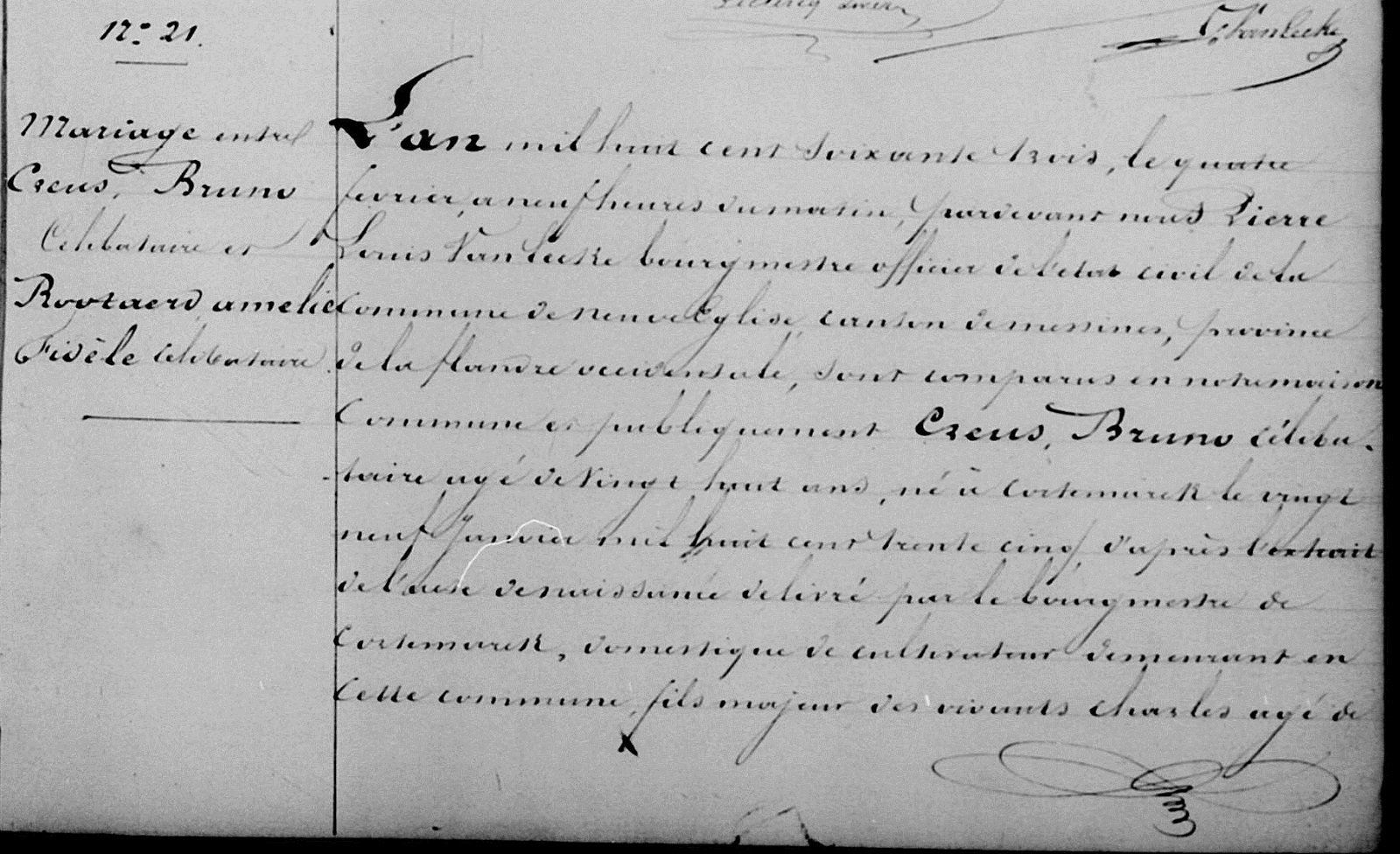 Nieuwkerke, WV, BE: Huwelijksakte nr 21 (1863) (Bron [358])