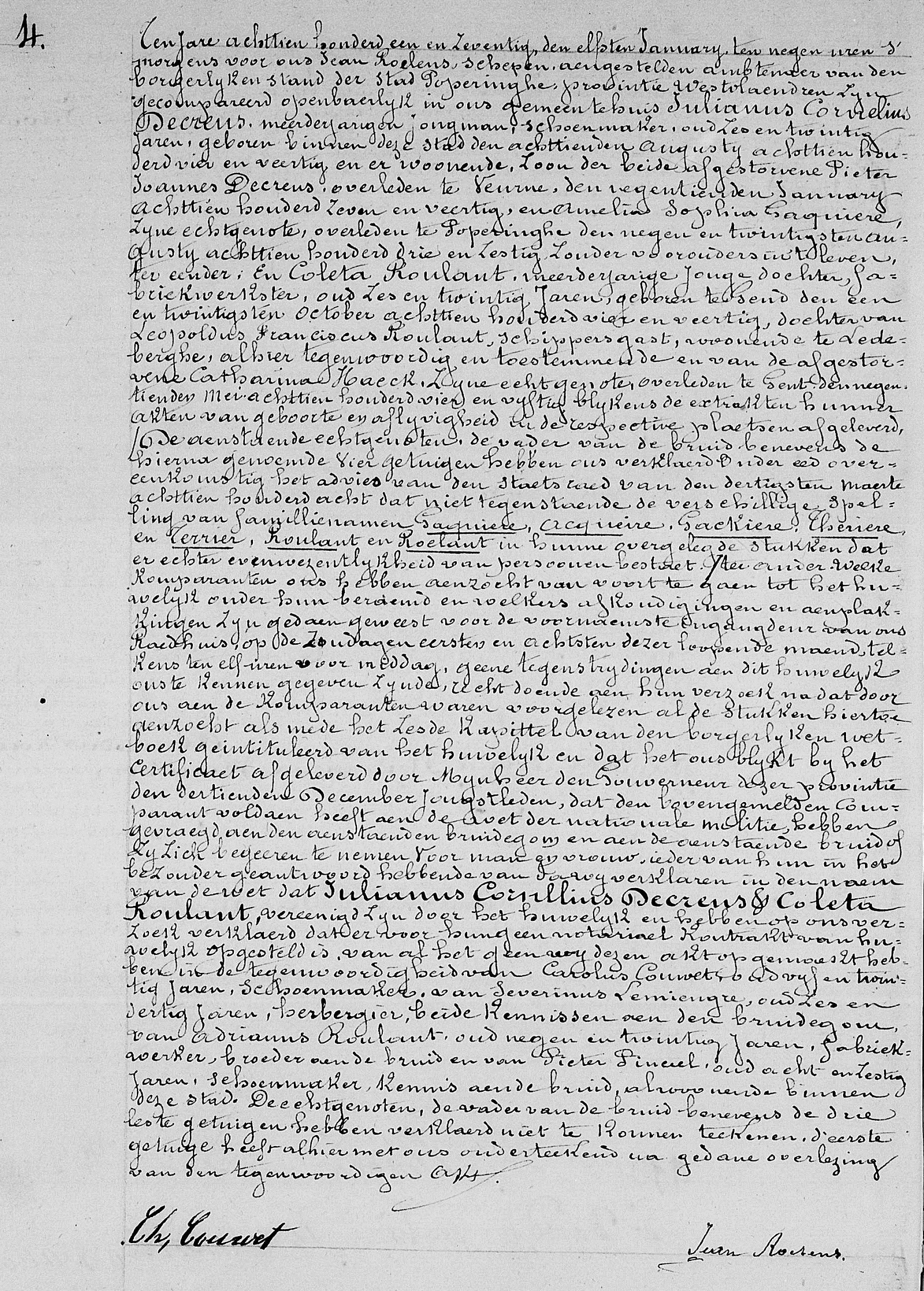 Poperinge, WV, BE: Huwelijksakte nr 4 (1871) (Bron [358])