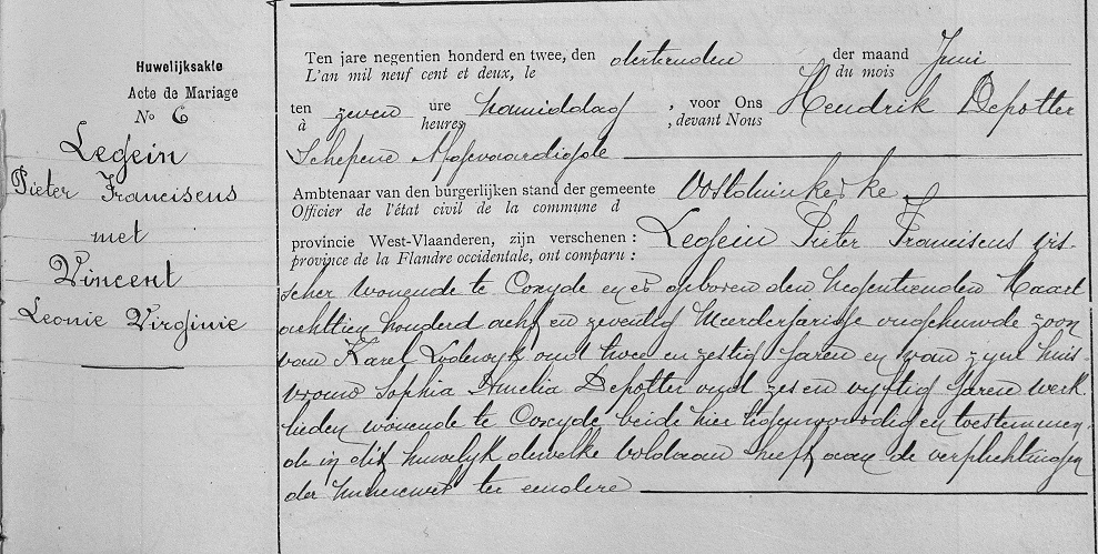 Oostduinkerke, WV, BE: Huwelijksakte (Bron [358])