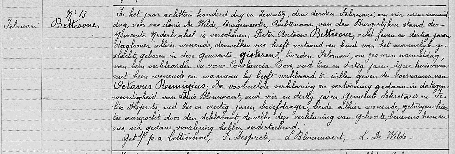 Geboorteakte te Nederbrakel, OV, BE (Bron [358])