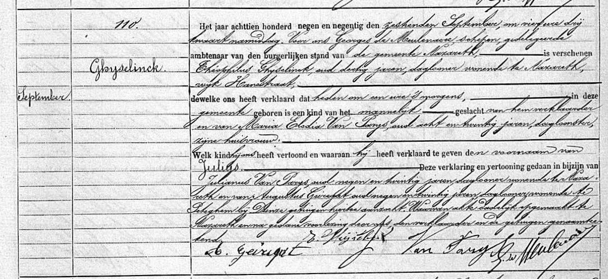 Geboorteakte te Nazareth, OV, BE (Bron [358])