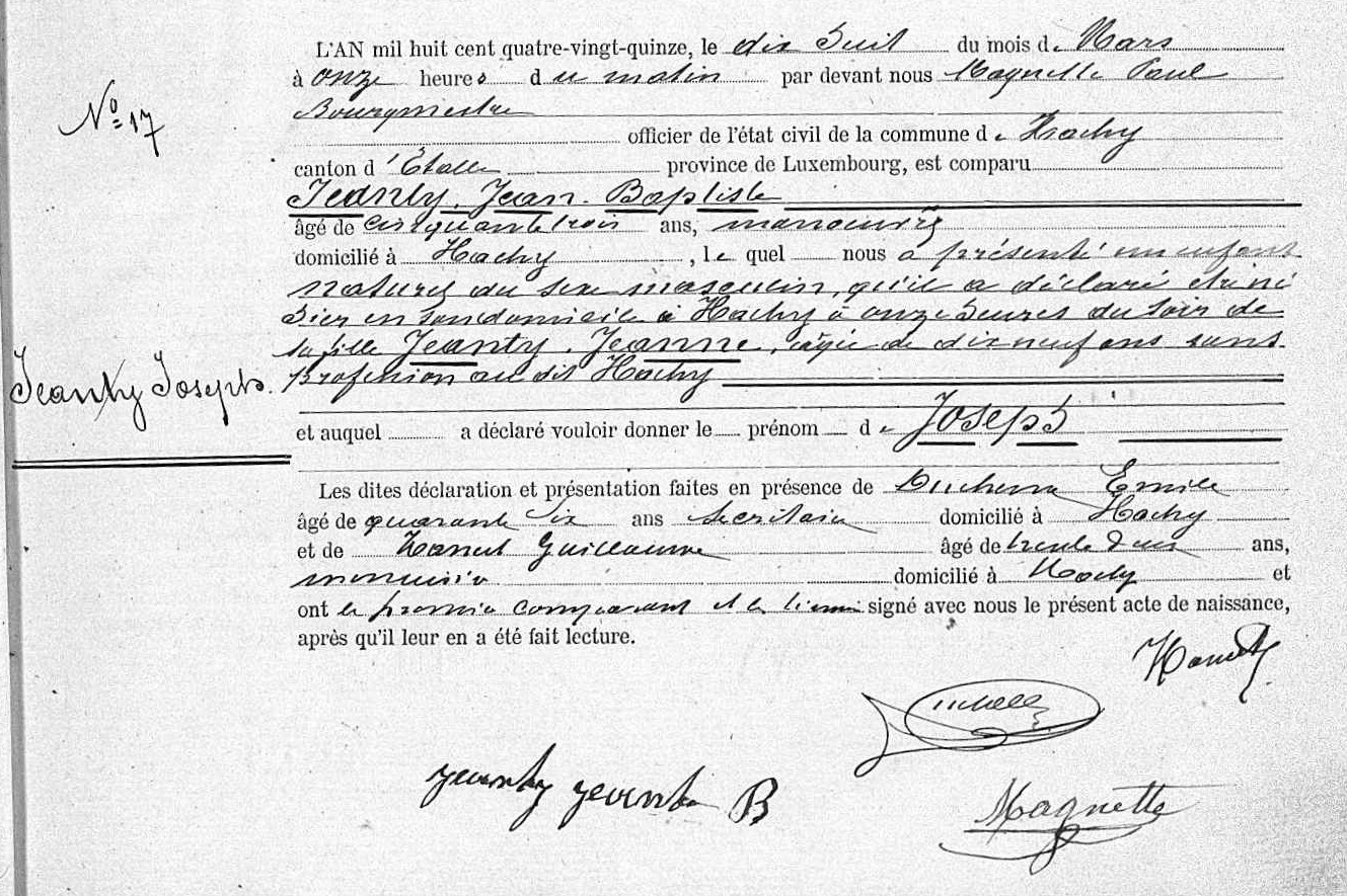 Acte de naissance à Hachy, LU, BE (Source [358])