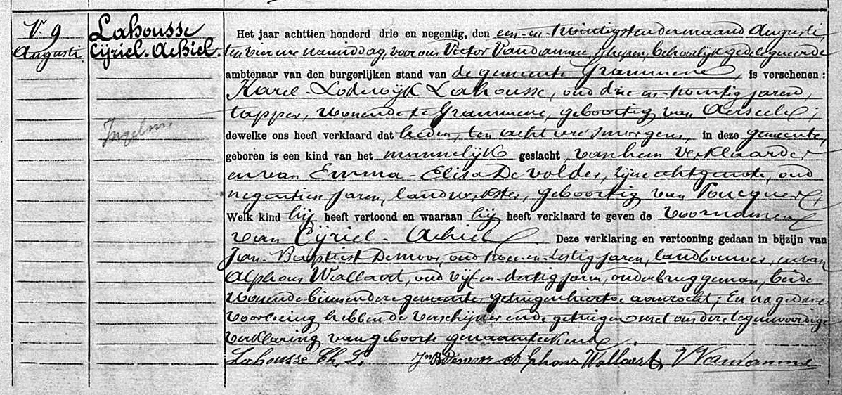 Geboorteakte te Grammene, OV, BE (Bron [358]) (Het beeld downloaden