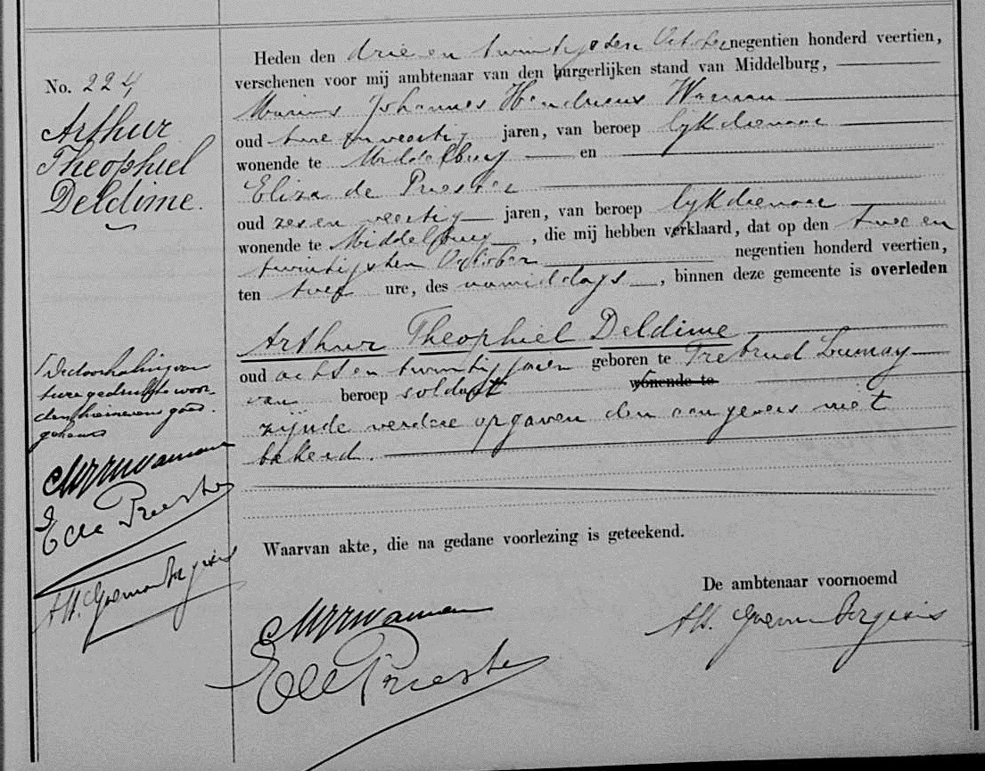 Acte de décès à Middelburg, Zeeland (Zélande, NL (Source [358])