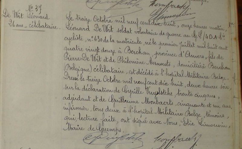Guemps, Pas-de-Calais, FR, overlijdensakte (Bron: Bernard SIBENALER)