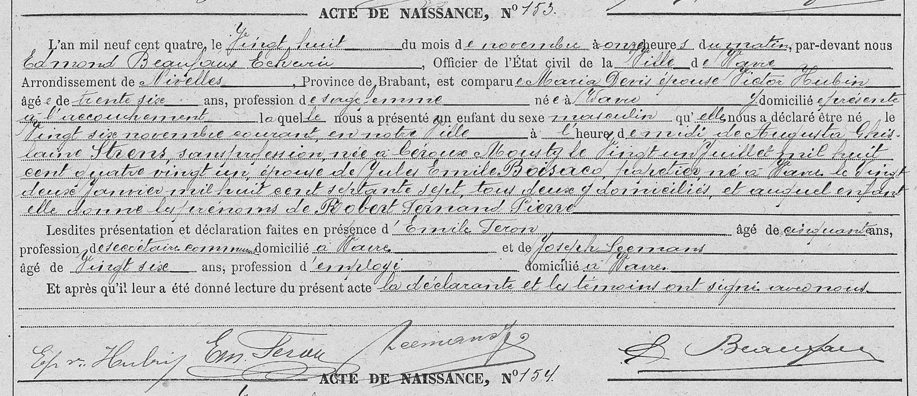 Acte de naissance à Wavre (Waver), BW, BE (Source [358])