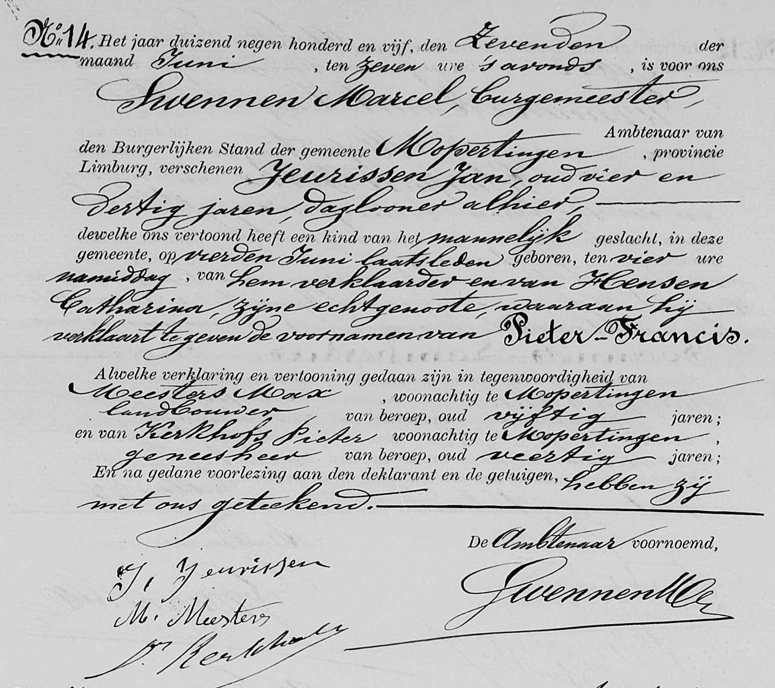 Geboorteakte te Bilzen, LI, BE (Bron [358])