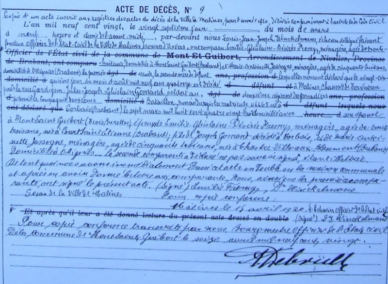 Registre aux actes de décès de Mont-Saint-Guibert, BW, BE