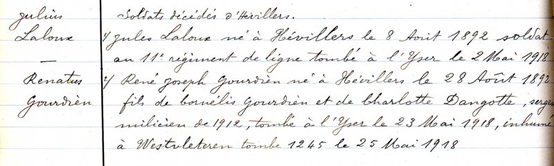 Actes de décès de la paroisse de Hévillers, BW, BE