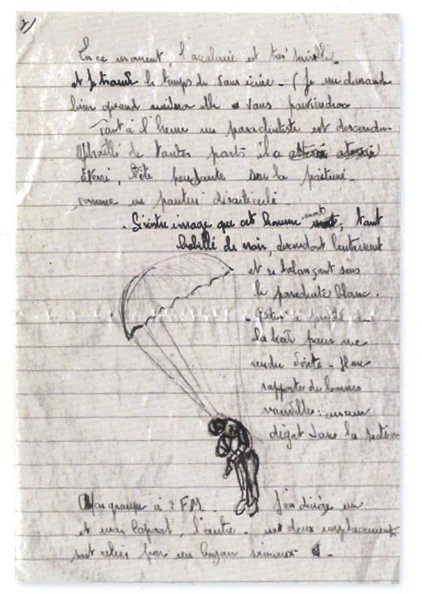 “Tout à l’heure un parachutiste est descendu, mitraillé de toutes
