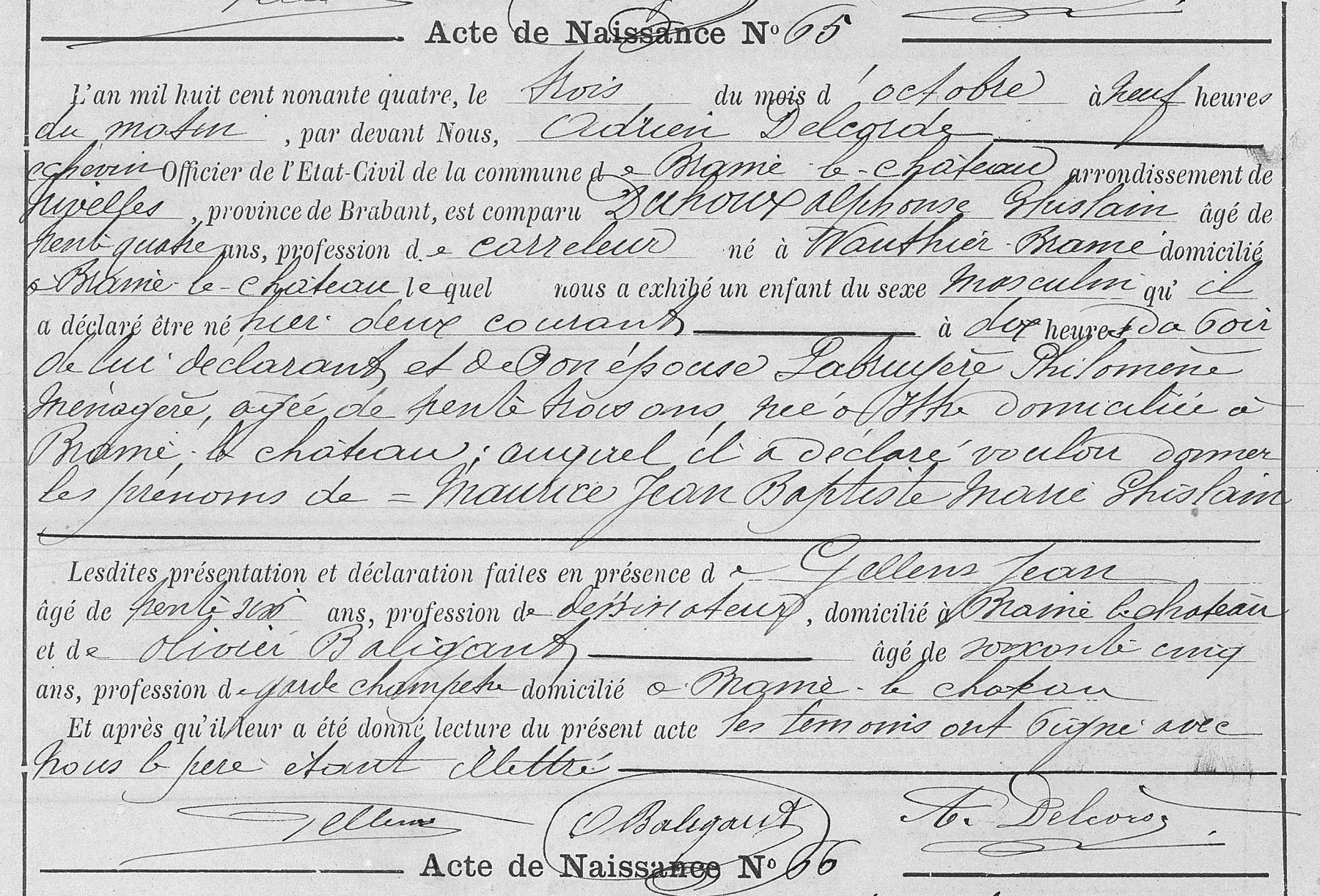 Acte de naissance à Braine-le-Château, BW, BE (Source [358])