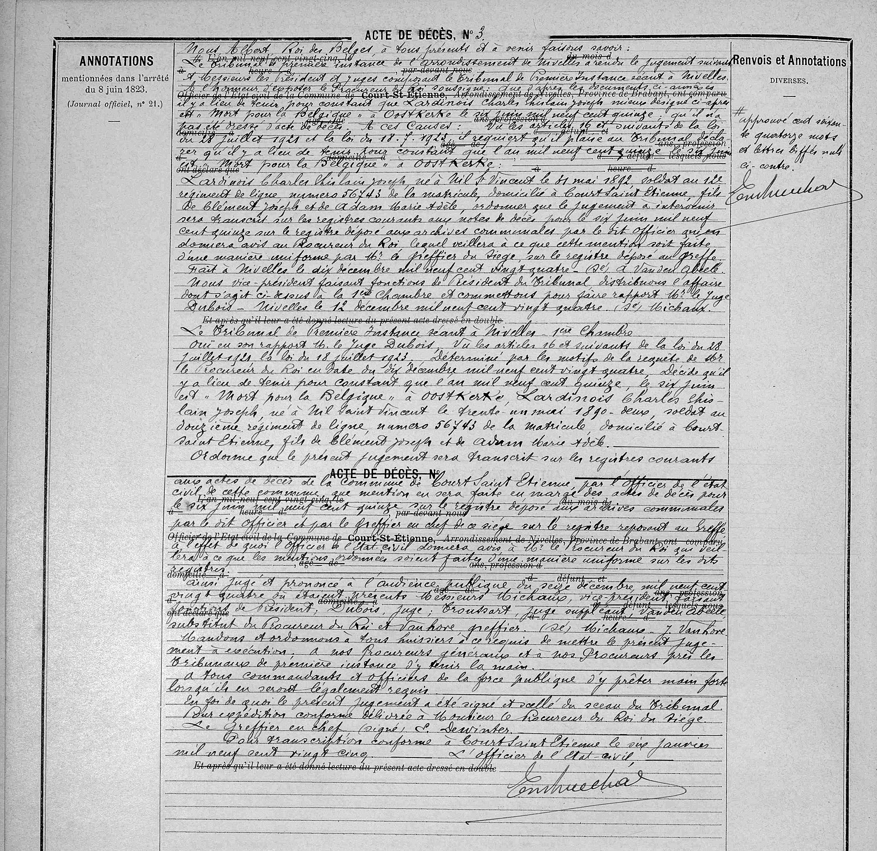 l'état civil de Court-Saint-Etienne, BW, BE